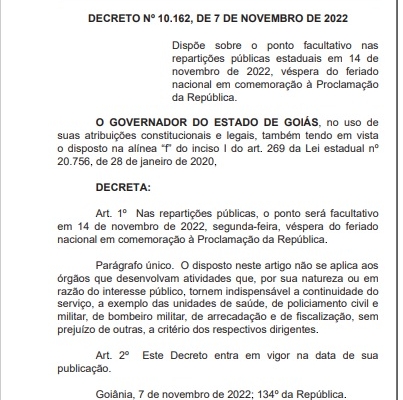 DECRETO Nº 10.162, DE 7 DE NOVEMBRO DE 2022