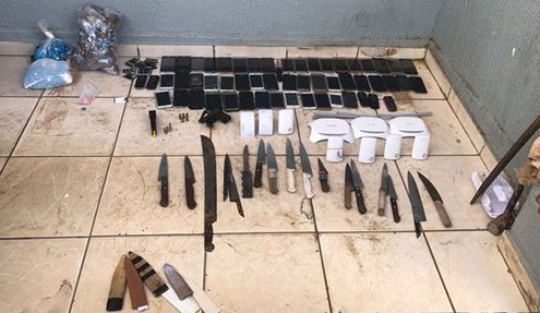 PM apreende celulares e armas no Presídio Odenir Guimarães, em Aparecida